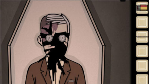 6、过去方拉出西装口袋内的照片查看字母;未来方输入字母,牙齿、耳朵与血液的开关均由未来方启动,按下牙齿开关后后方机关打开;过去方打开牙齿闸门取出扩嘴器为阿尔伯特戴上,依照未来方的白色方块线索按下对应牙齿。