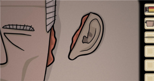 8、过去方绘制完成后获得解剖刀,割下阿尔伯特耳朵放入盒子;未来方确认取得肉块后开启血液机关,按照字母顺序点击机关。