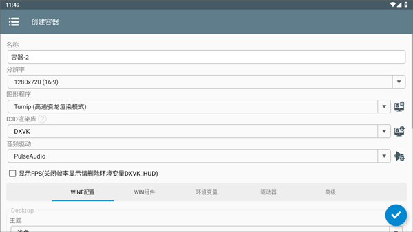 2、选择适合的屏幕分辨率,并设定显存大小,手机配置较低时建议调小分辨率与显存。