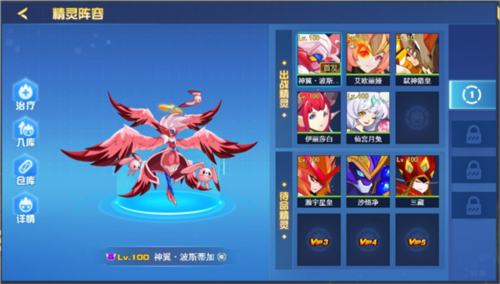4、也可像页游一样切换至仓库,更换精灵阵容。