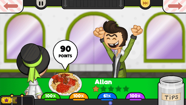 9、食物完成后交由顾客品尝,顾客会根据满意度打分并支付小费。积累的小费可用于购买道具,帮助厨师后续做出更美味的菜肴。