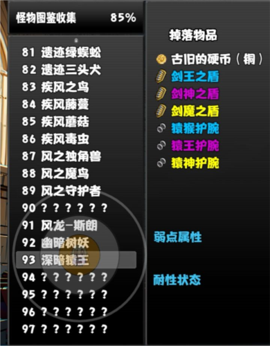 图鉴提示:编号16为反挂机机制;45至47需通过竞技场解锁;90为八岐大蛇,挑战前需具备一品装备;94至97为史莱姆系列,仅能使用史诗卷轴激活其一。