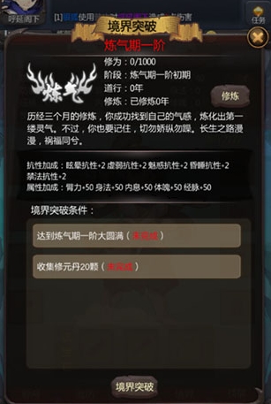 1、游戏核心为修真题材的放置玩法,玩家将经历练气、金丹、元婴直至成仙的完整境界突破;