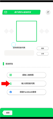 4、进入界面后,可直接复制自己的研究者代码让其他玩家添加;也可以在输入框中填入其他玩家的研究者代码来发送好友申请。