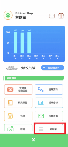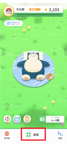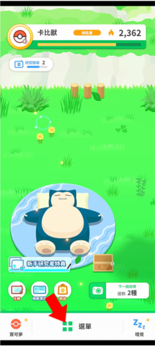 1、安装宝可梦睡眠最新版,完成基础教程来到主界面,点击下方的选单按钮。
