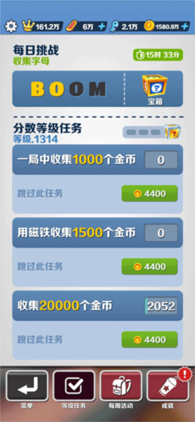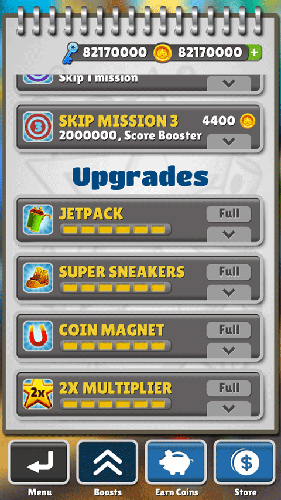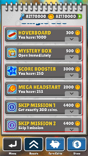 在游戏中收集到的金币,可以前往商店购买加速、磁铁、滑板等实用技能与道具。