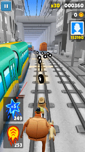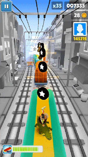 这是玩家常遇到的情况:左右两侧无碍,但中路连续驶来多列火车。为了收集车顶的金币,可以运用基础组合跳滚技巧,操作需稳健;若火车尚未到达脚下就过早下滚,则会导致失败。如果玩家装备了磁铁道具,普通跳跃即可,磁铁会自动吸附附近遗漏的金币。
