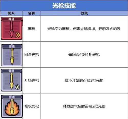 魔剑:忽视暴击率;召唤五把光枪后可召唤魔剑进行攻击。