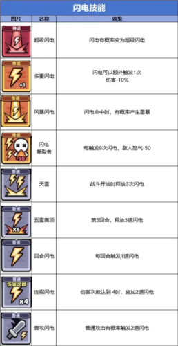 雷神之矛:忽视连击率;闪电触发六次后降下神雷,对所有敌人造成100%攻击力的闪电伤害。