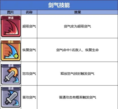 核心技能:全部剑气相关技能;