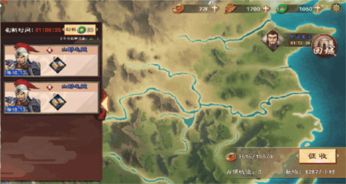 1、征收:对已占领城池征收铜币,城池数量越多,每小时征收收益越高。