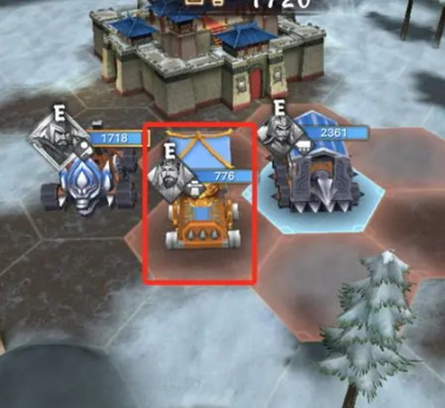 投石车:攻击距离4格,移动力2格;普通攻击可对目标及周围1格造成范围伤害,适于攻击密集敌人,但自身较脆弱。