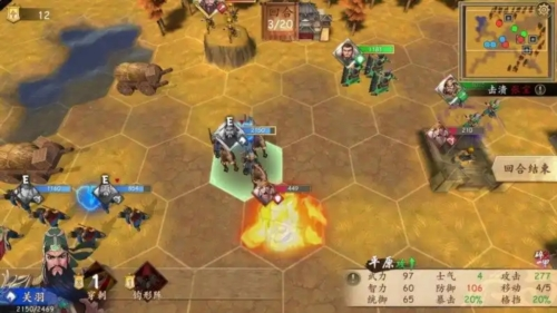 游戏作为正统三国战棋手游,包含硬核的六角战棋玩法;拥有辽阔战场与独特的武将技能系统,多种真实地形使得战局多变。