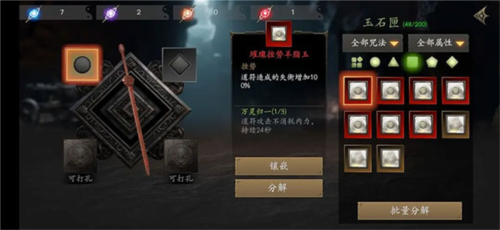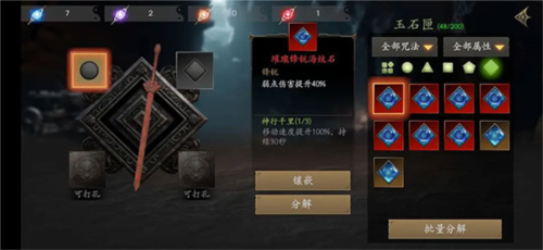 游戏内共有13种不同基础属性的镶嵌宝石与5种效果各异的咒法。