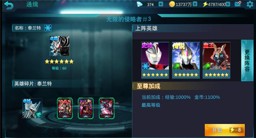 3.练度与晋升系统;游戏引入了奥特练度系统,玩家可通过消耗奥特能量石来提升角色练度。这套系统增加了进阶深度,让玩家能个性化地培养奥特曼,增强战斗实力。