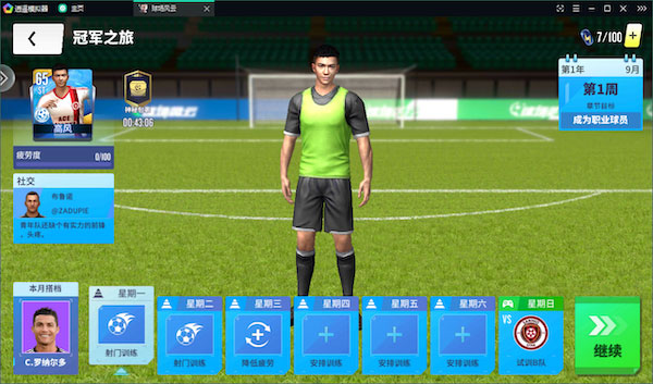 第三天目标等级四十级,通关第九章后可能出现包含梅西或C罗的限时赞助。重点训练球员,四十级开启教练系统,这是快速提升战力的关键;五星紫卡教练性价比极高。同时关注轮换球员的养成。四十级时也可能出现教练相关的限时赞助。