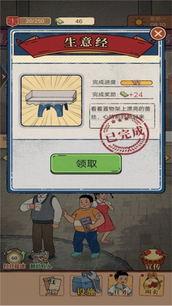 2、内置丰富的任务系统,完成任务可获得奖励,并能提升店铺的等级与声望。