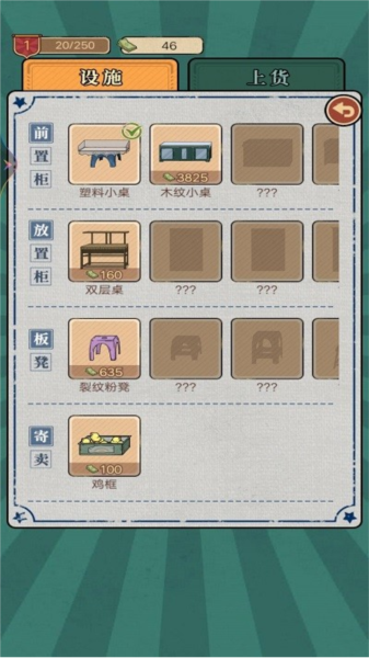 1、店内的柜子、板凳等设施都能进行升级,升级后不仅功能更好,外观也会焕然一新,这需要消耗一定的金币。