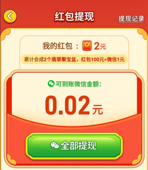 4、合成出翡翠聚宝盆可额外得到0.12元红包;