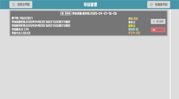 异世界冒险的舞台充满了未知与神秘,等待你去探索;符文试炼塔作为核心场景,象征着自我挑战与成长的阶梯;你将扮演一名试炼者,肩负挑战高塔与探索世界的使命。在冒险中搜集各类资源,这是强化自身并解锁更高层试炼的基础;将这些资源为试炼塔注入魔力,便能开启新的层数或激活特殊功能。试炼塔层层递进,每层都有更强的敌人与考验;异世界的未知领域里,还隐藏着独特的资源、任务与秘密。