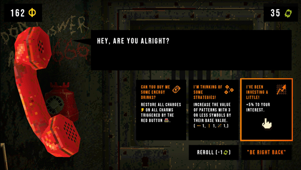 6、成功完成一项目标后,点击场景中的红色电话,可以从多个提供的效果中选择一项,应用于后续的游戏过程。