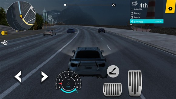 2、命名完成后,会开启一场初始竞速赛;左侧虚拟摇杆控制方向,右侧控制油门与刹车,顺利抵达终点即可。