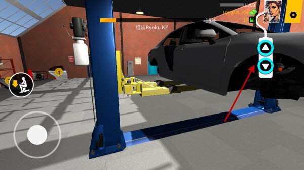 1、在车库内,使用左下方的虚拟摇杆控制角色移动。
