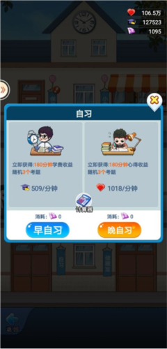 早自习:每天拥有一次免费早自习机会,完成后立即获得三小时收益,后续可通过钻石增加次数;