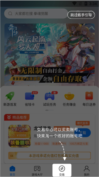 1、平台设有交易页面,支持游戏账号买卖,拥有小号或老号的玩家可在此进行交易。