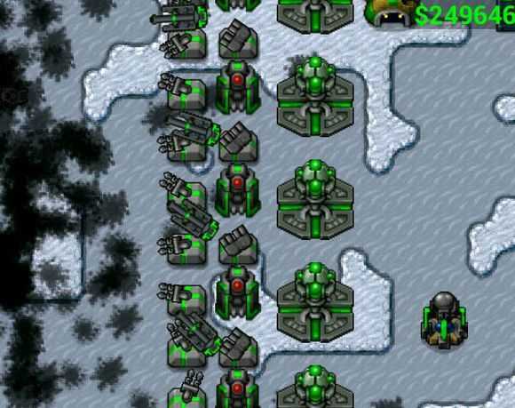 优先选择强力兵种,例如重型坦克、自行火炮与轰炸机;后期可制造飞行堡垒、巨型蜘蛛或核弹等高级单位;战斗初期建议建造若干炮塔巩固中央区域防御。