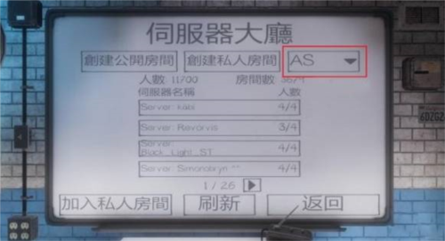 1、进入游戏后到达伺服器大厅,在界面中找到创建公开房间的按钮;