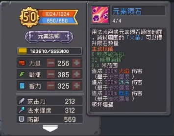 元素棱镜可召唤一个棱镜,持续降低范围内敌人的元素抗性,并能折射元素激光。元素陨石能借助法术召唤陨石砸向地面,若消耗周围火苗,则可增加陨石的数量。