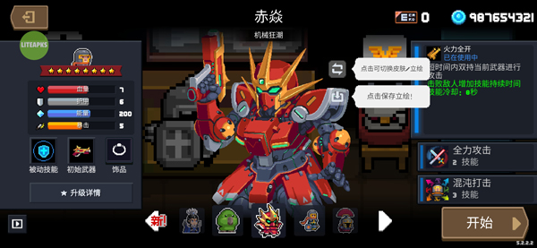 10、经验条满后,升级自动触发,玩家可选择强化机械臂的特定部位。