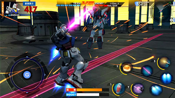本作实现了移动端上令人惊叹的画面表现,所有机体、场景与特效都力求忠实还原《机动战士敢达》的世界观,为爱好者呈现出一款高品质的手机动作对战游戏。
