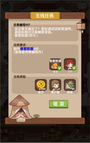 核心任务是经营好你的饭店,根据要求制作指定菜品、特定品级的菜肴,或运用厨师技能完成烹饪。这些多样的经营目标能助你提升厨艺,吸引更多客人光顾。