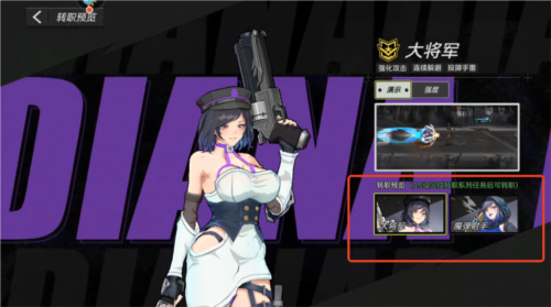 5、玩家达到15级即可进行转职,职业选择界面提供了转职预览,比如大将军具备闪避和手雷范围攻击等特性。