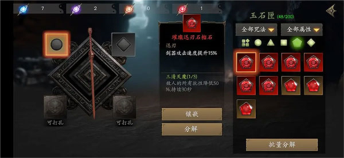 红色宝石(五边形):迅刃、蓄劲、精芒。