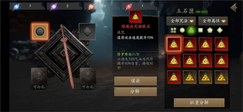 橙色宝石(三角形):疾咒、凝气、金芒。