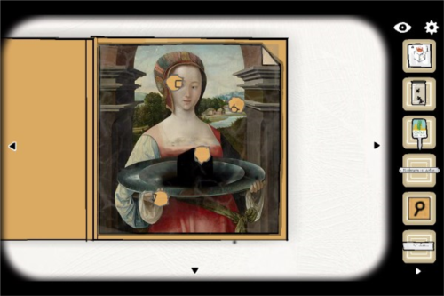 16、打开文件,按纸片提示用雪茄烫画像特定位置,顺序为黑方块上方、左手、屋子与左眼,记住符号;