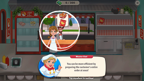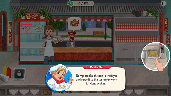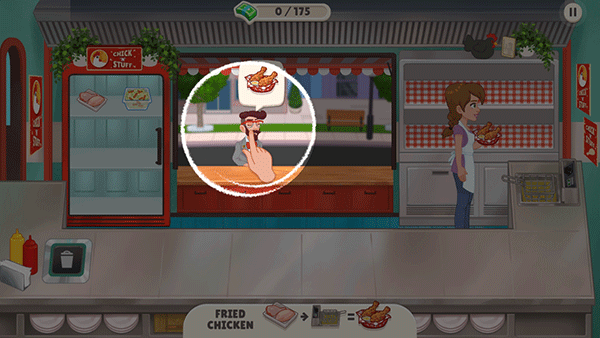 进入游戏后,留意顾客头顶显示的图标,例如“炸鸡”图案,这代表他当前想要的食物。