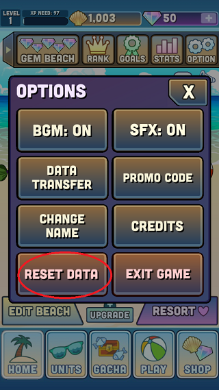 2、在弹出页面中,找到并点击左下角的【reset data】重置数据按钮;