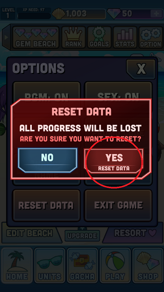 3、在确认提示中选择【yes】,游戏数据将被清除并重新开始。