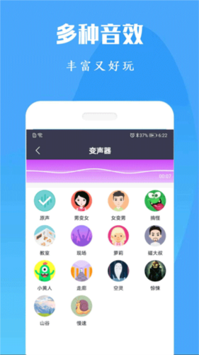 4、音效选择丰富,可为原声添加萝莉、大叔、惊悚、空灵或搞怪等多种特效;