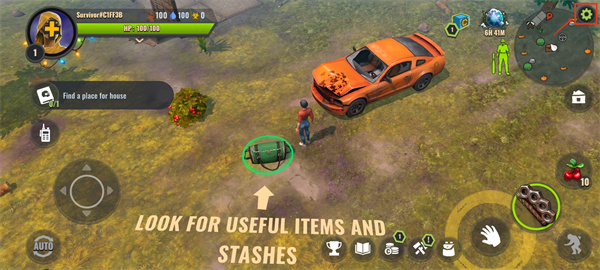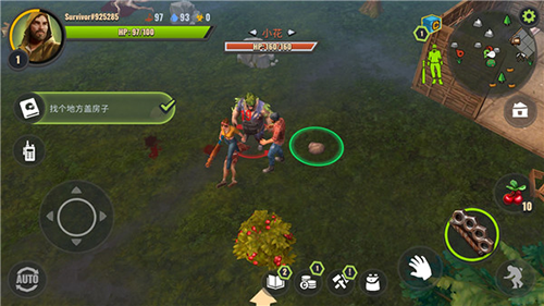 1、开局先收集树枝制作简易武器,清理家园附近的丧尸。随后前往车辆获取刀具,并按照系统指引铺设几块地板以解锁地图。地图左侧为岩石区域,右侧为森林区域。建议先前往右侧探索,可能会遭遇一名敌对NPC,击败他并收集其物资。尽量将背包填满资源后返回家园。此时应已可建造储物箱,建议建造三至四个,用于存放物资。