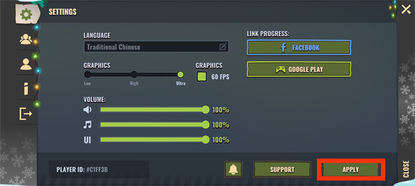 4、最后点击“APPLY”按钮确认,即可完成语言设置。