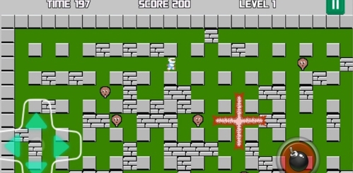 4、早期版本画面虽显粗糙,玩法也较为单一,但需要玩家操纵机器人放置炸弹消灭敌人,并寻找隐藏在砖墙后的出口。