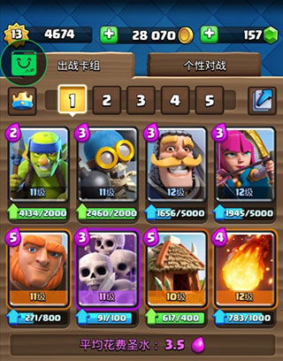 卡组优点:采用人海战术,能有效克制王子等单体单位;骷髅主要用于防守与引诱敌方法术,随后巨人带领其他兵种进攻另一路;哥布林小屋可放置在国王塔上方中间位置。