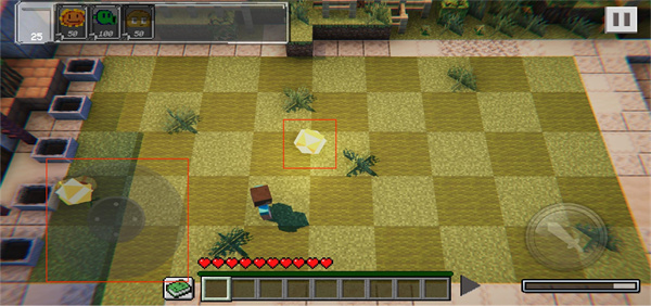 2、通过滑动左下角摇杆控制角色移动,收集场景中掉落的阳光资源;