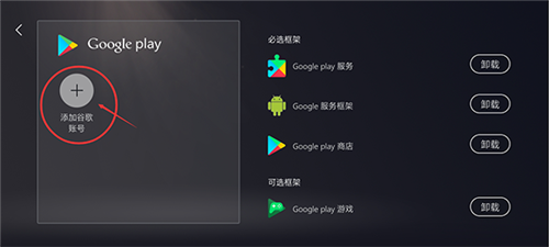 3、界面显示谷歌必要框架已安装完成,点击【添加谷歌账号】即可进行登录操作。