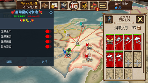 2、建设领地,训练士兵,以武力征服周边势力,持续扩张版图;